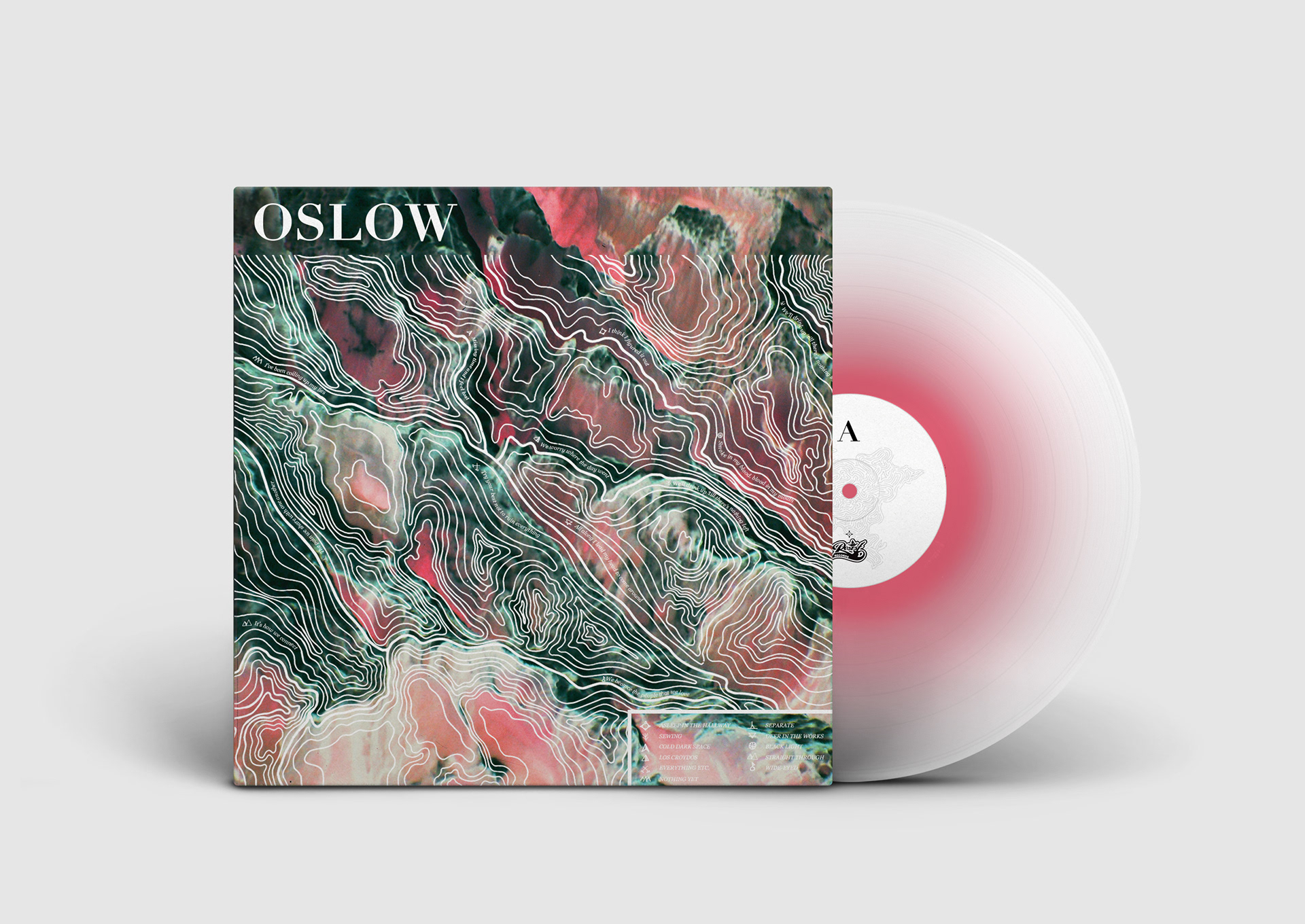 Album artwork, posters & merch design for Sydney band Oslow 2017. Includes a limited edition illustrated screen-printed insert with the 12 inch vinyl.
